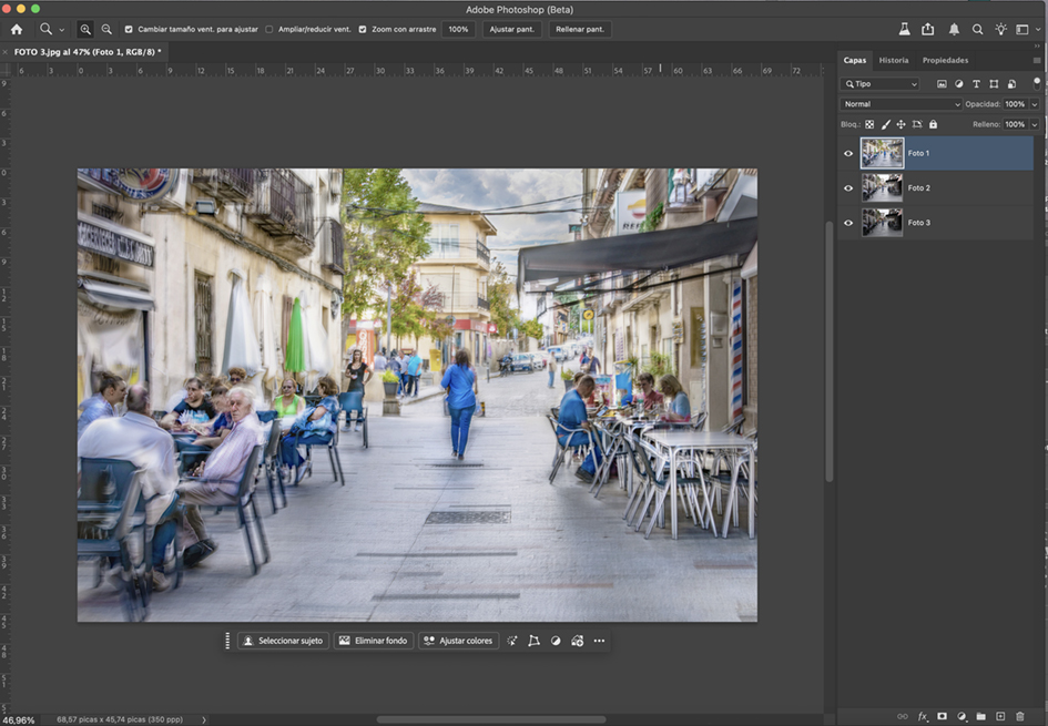 However, a Neural Filter can be useful to create a color-patch layer to insert between the three main layers.