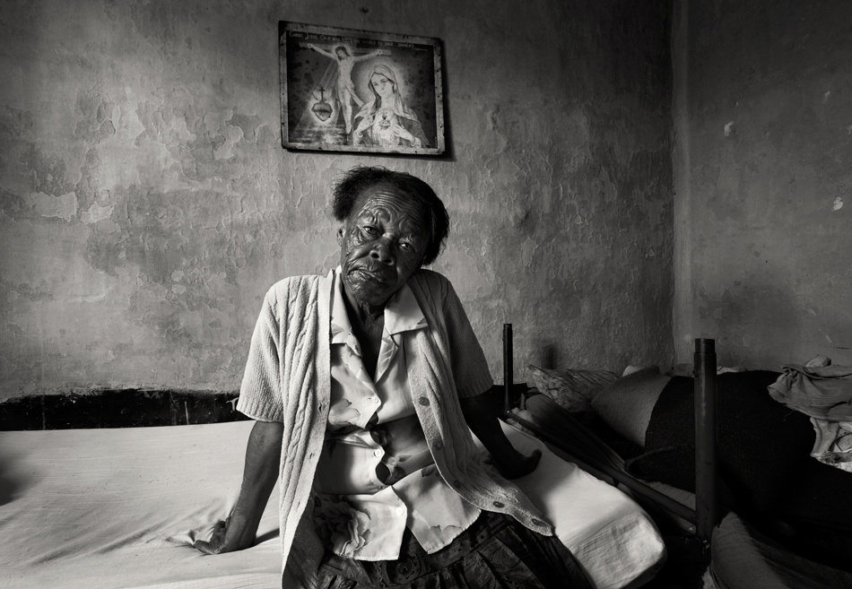 As to environmental considerations, relying on what is available is my modus operandi. I shoot in low light, most commonly without reflectors, often using a high ISO and always using a tripod. Whenever possible, I try to include a few personal belongings — parts of the room or even the outside of the structure people live in —this in an attempt to show the viewer something that is owned or valued by the subject in the frame.