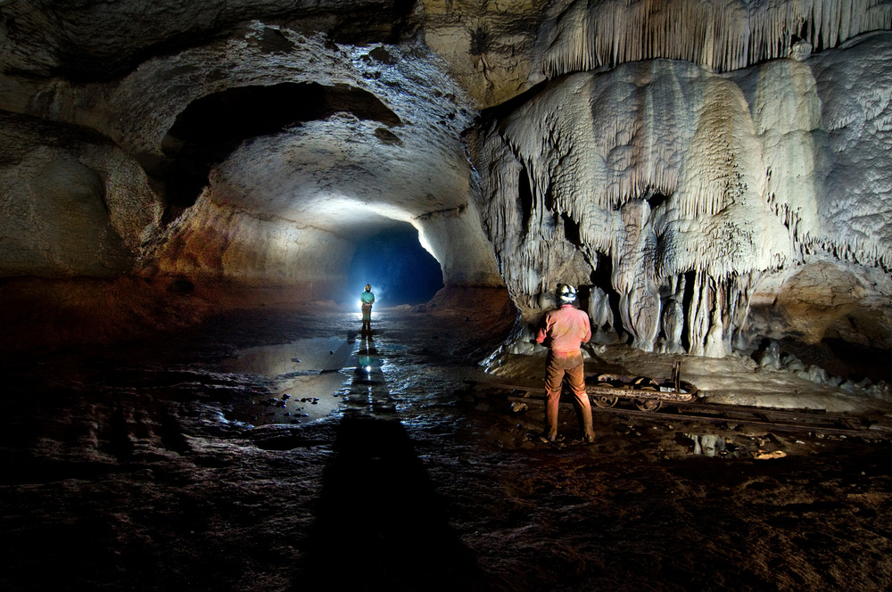 Underground, the photographic subjects are numerous, from macro shots of minuscule concretions, to surprising landscapes which some gigantic cavities will reveal. The rocks and the different shapes of erosion are also a source of inspiration. And then there are the photos of the humans who explore this mineral-rich environment.