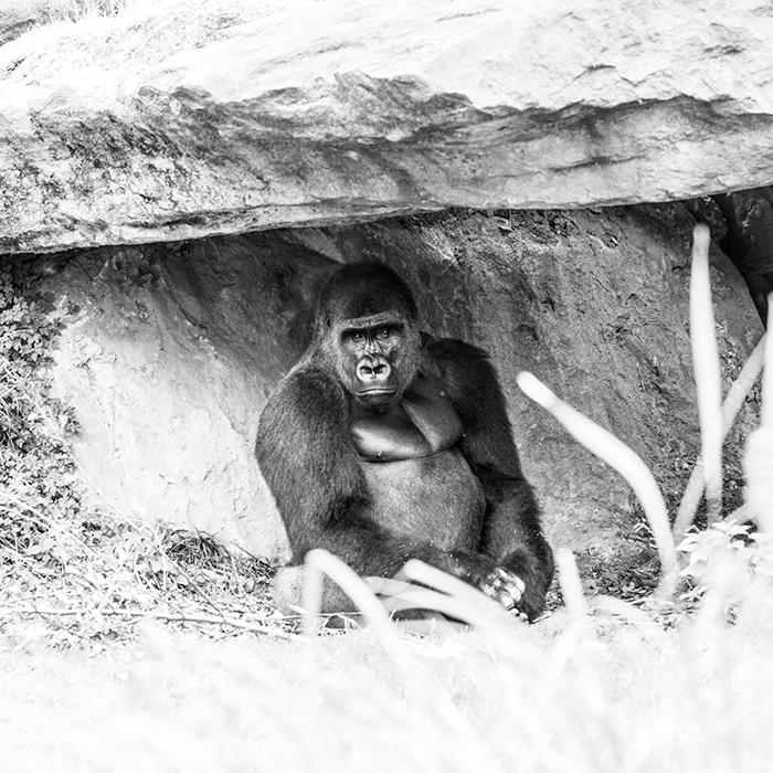 A life of a big monkey. The black and white, gives another dimension to the image, I will not teach you of course, but on the animal look, it changes the emotion. By the way, now that I think about it, I never tried to do a black and white with the squirrel I took a picture of, or Momo the giraffe, but I did with Kruger :-)