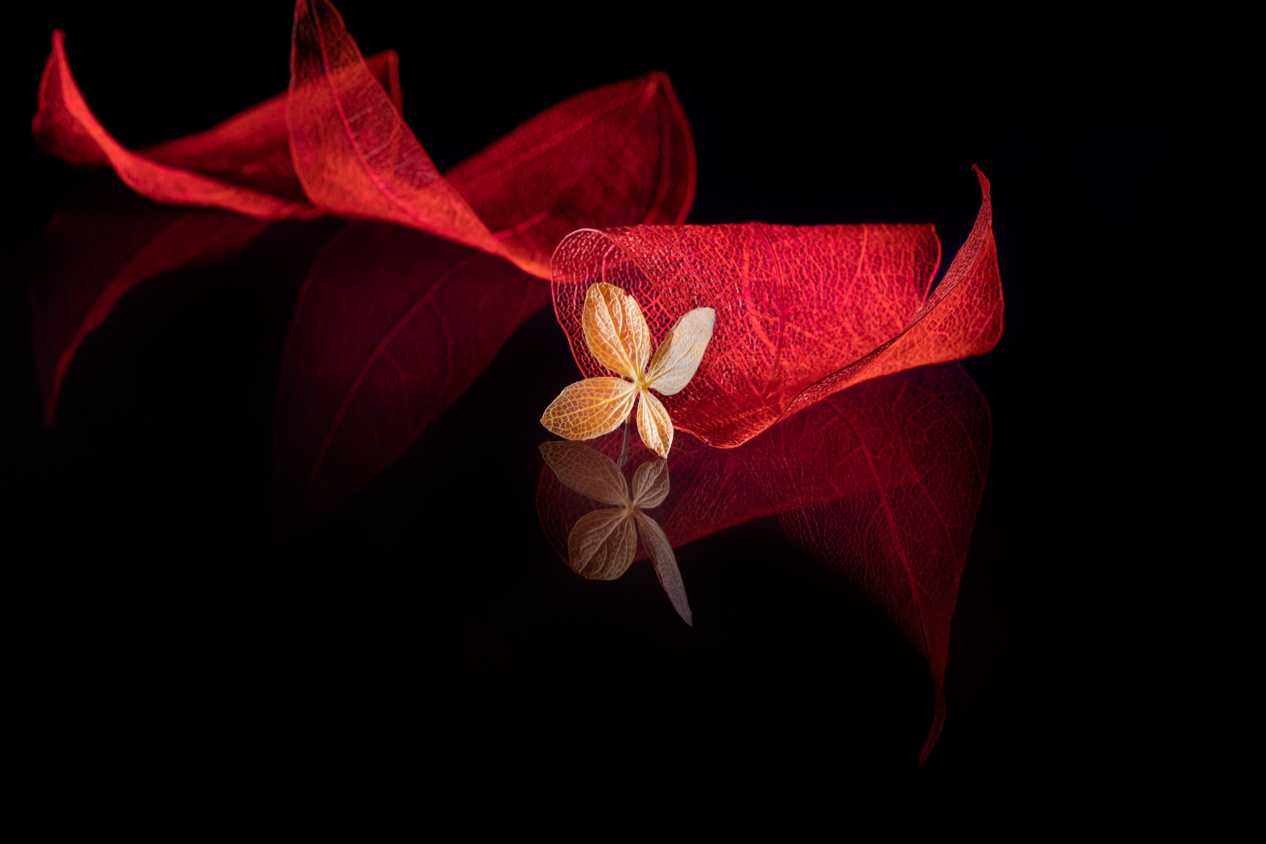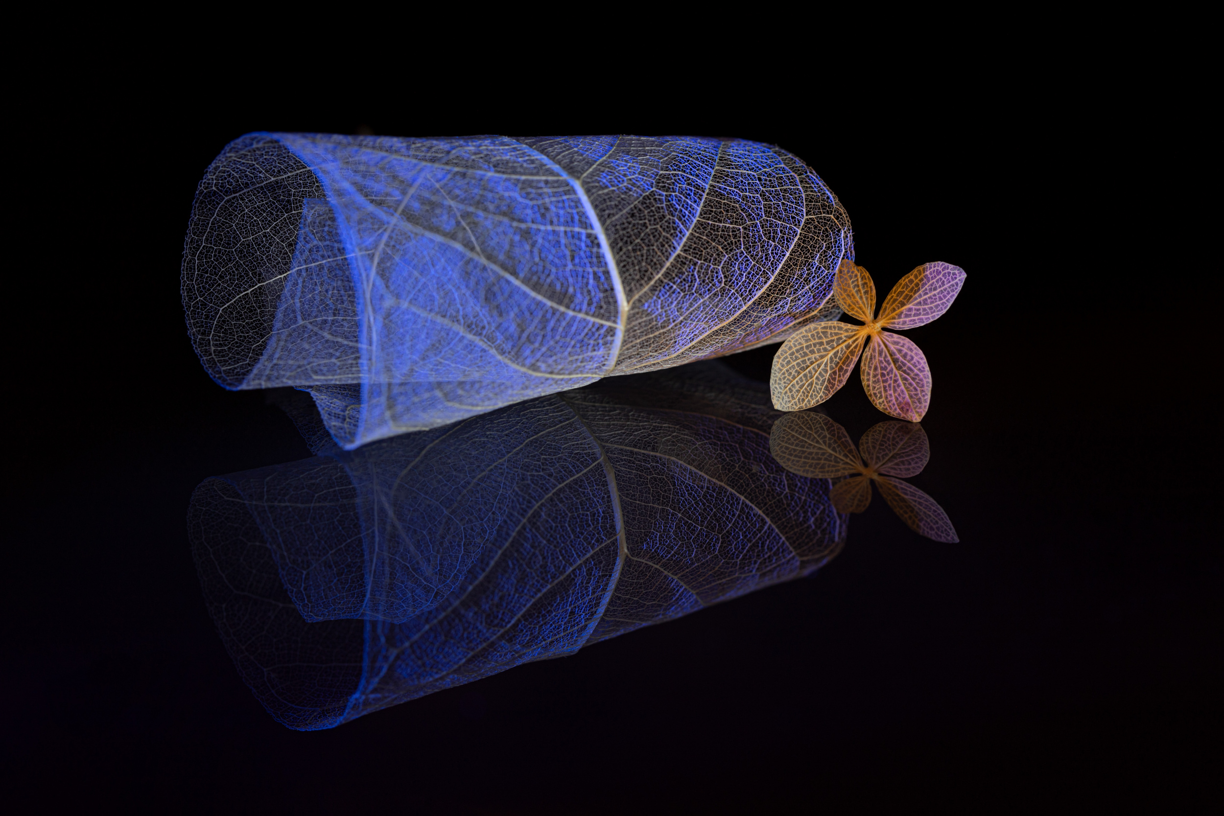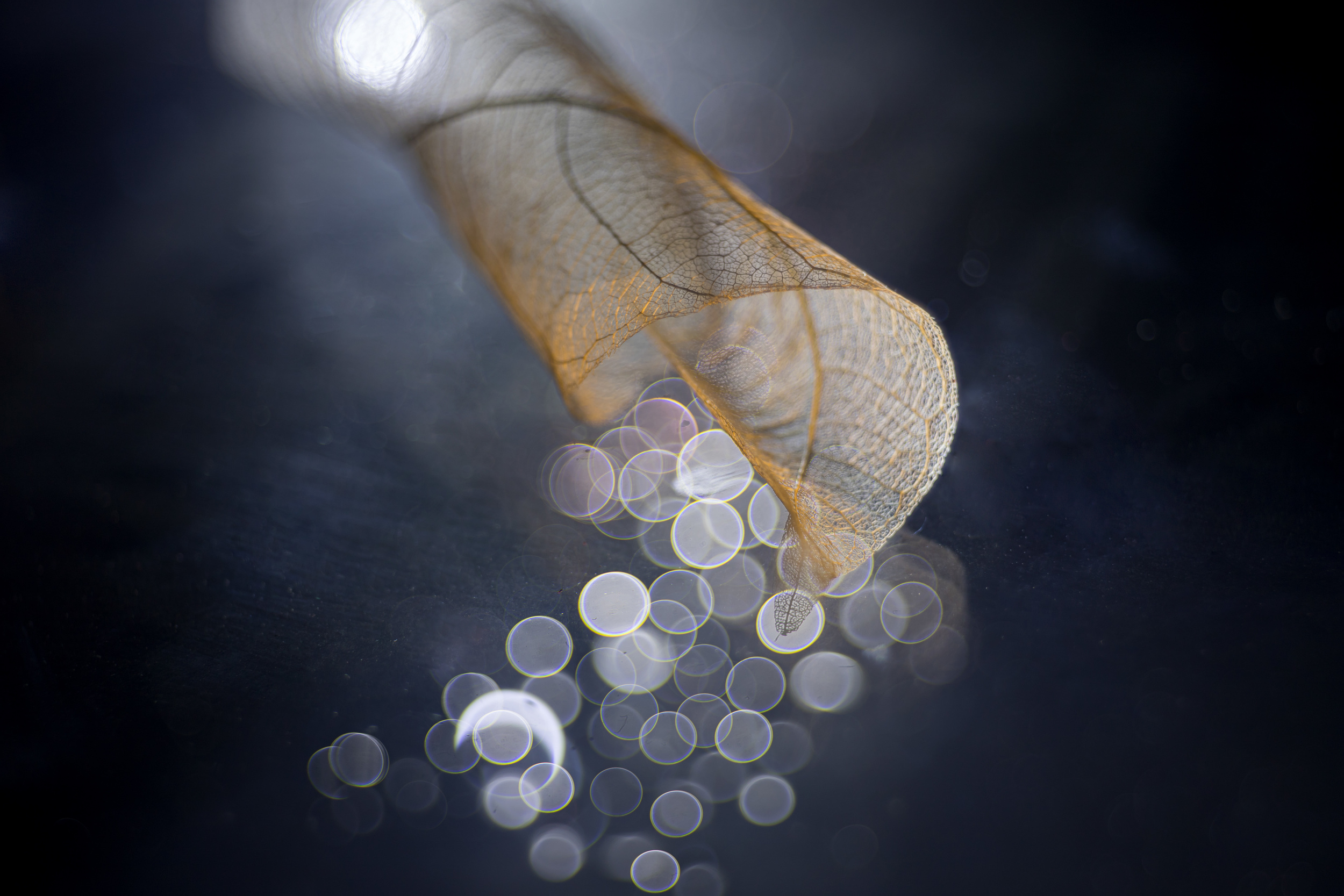 But I can tell something about an unusual photo. The set-up is built on glass and illuminated by a light source and under the glass - as if forming a continuation - another composition is built, which in turn is laid out on the glass where water droplets forming bokeh are located.
