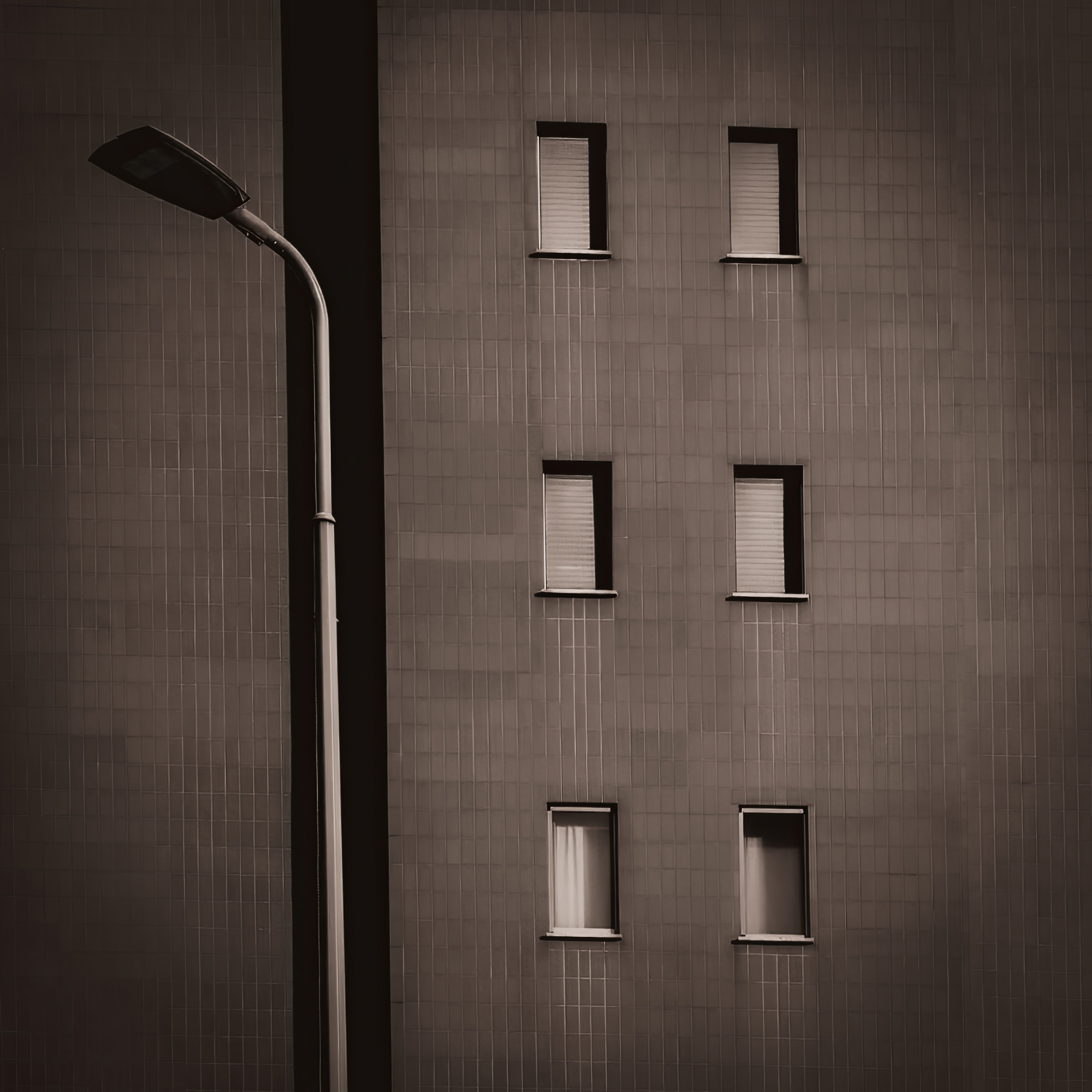 "I like the subtle tones of the image and the regularity of the window arrangement as well as the way the lamp turns away from the windows. The light and textures enhance the photo, and I love the witty title too."