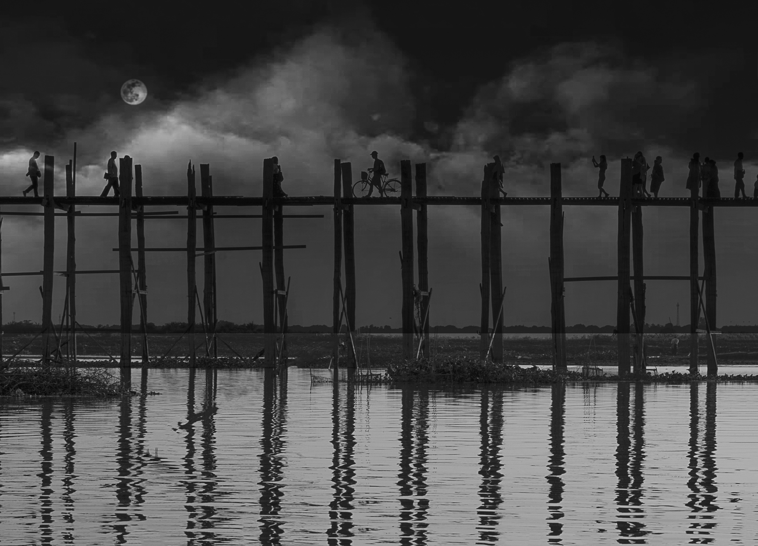 'U Bein Bridge under Moon Light' by Jiahong Zeng