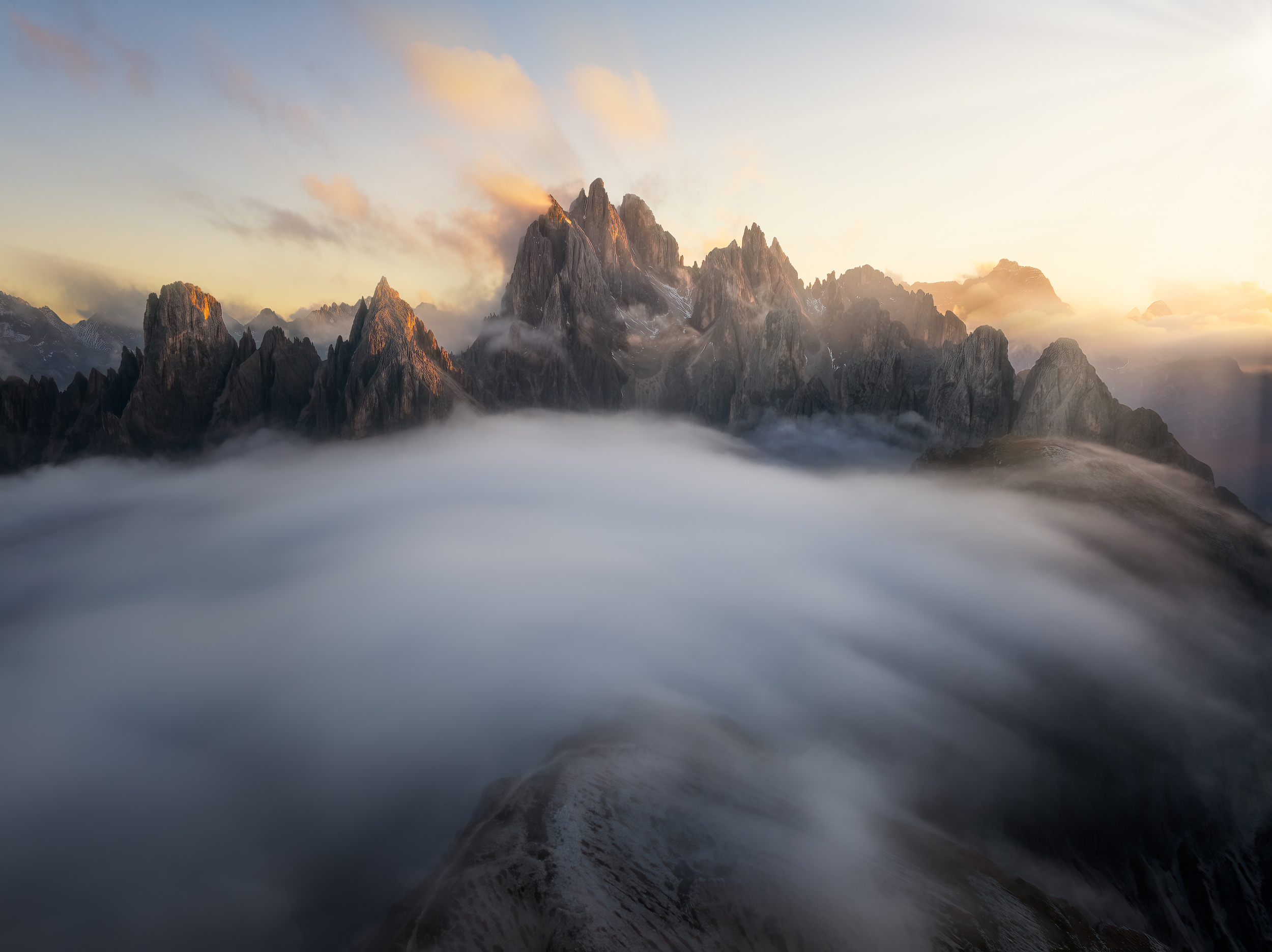 I mainly use the SONY A7 series camera and a wide angle lens most of the time. The wide angle lens allows me to include more elements in the frame and its distortion effect can make the foreground even more captivating. I also use Kase filters to help me with my shots. Meanwhile, when shooting in Europe, I often fly my DJI Mavic 3 Pro, which gives me a bird's eye view to capture these spectacular scenes. For landscape photography, using a variety of perspectives to capture these breathtaking landscapes is really the best approach.