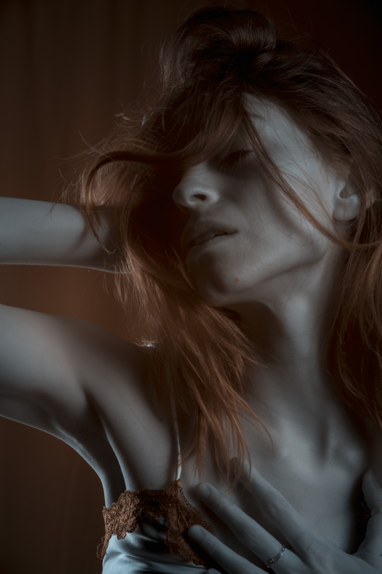 The model must feel comfortable. I talk to the model a lot before and during the shoot.  The choice of music is important. I always play what she wants to hear, according to the style of the shoot. For a portrait of a young girl, for example, she asked me to play Coldplay. We started with that, but then it turned into a Mozart Requiem.